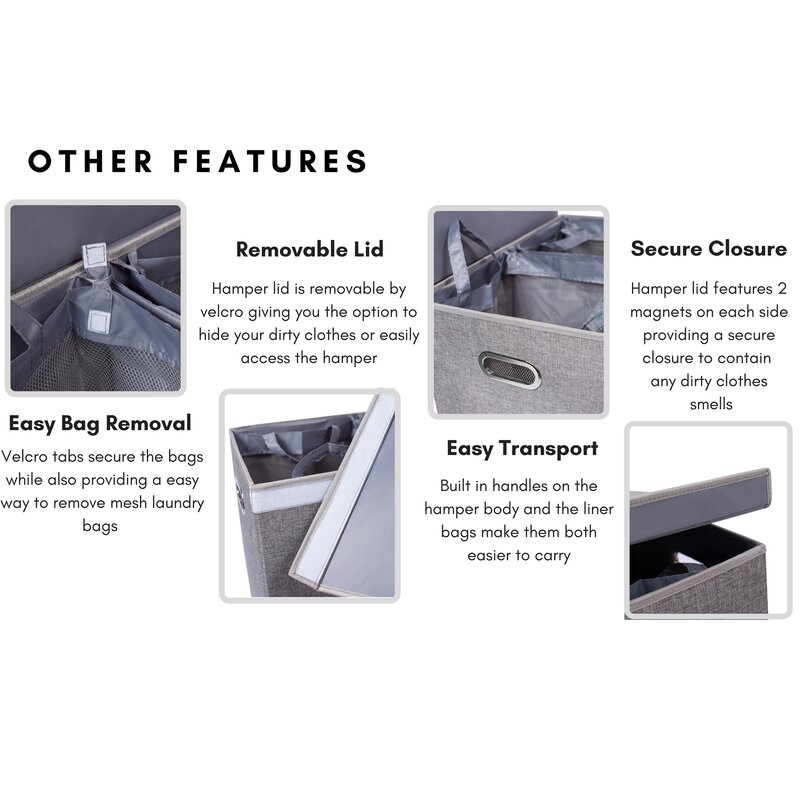 Lid and Removable Liner: Includes a removable laundry bag for easy transport from the hamper to your washing machine. The lid conceals smelly clothes while also keeping your dirty laundry out of sight.