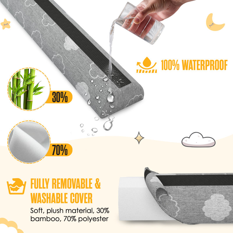 100% waterproof cover-The removable and machine washable bed bumper cover is 100% waterproof, making it easy to clean and keep your child’s sleeping environment clean and healthy. Our bumpers work well in toddler, twin, full, queen, & king beds!