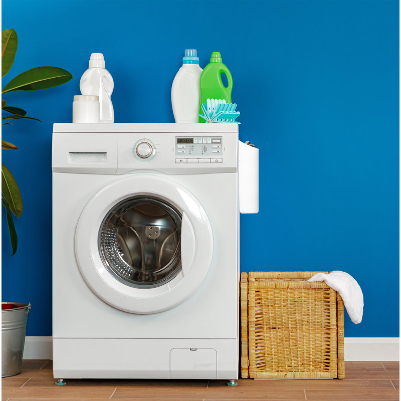Attaches magnetically to washer and dryer machines. Or mount to wall or shelving with nail or tack. Hardware is not included.