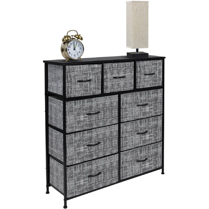 Give your household essentials a cozy landing spot with the Sorbus 5-Drawer Dresser. This beautiful dresser chest features a tabletop surface and pull-out drawers to tuck away household clutter. The thoughtful design is great for small living spaces and works equally well near the bed or sofa. Organization enthusiasts will enjoy filling each drawer with clothing, linens, and knick-knicks from around the home. The lightweight frame makes this unit easy to transport and when not in use, simply fold the fabric drawers flat for storage. Use alone as a single unit or pair with any drawer configuration from the Sorbus Furniture Collection.Great for any room.Add this charming dresser to your bedroom for blankets and towels while displaying fresh flowers and photo frames on the tabletop. Place in any walk-in closet to organize your already stylish wardrobe and accessories. In the nursery, this dresser keeps baby products, toys, and story books organized and within reach. The possibilities are endless!About the design.5-drawer dresser with gray textured print.Lightweight and easy to assemble.Hardware and instructions INCLUDED.Drawers made of non-woven fabric.Made of steel and MDF wood with black finish.Accessories shown in image NOT INCLUDED.Measures approximately 39.50†L x 11.87†W x 24.62†H.