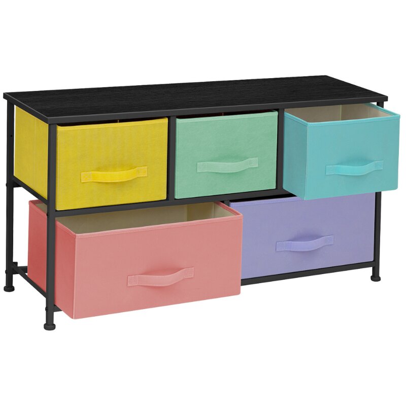 This colorful dresser chest features a tabletop surface and pull-out drawers to tuck away household clutter. Place all of your child’s folded t-shirts, jeans, pajamas, or extra blankets and toys within the spacious fabric drawers. For display, the top surface can be used for lamps, books, clocks, and more. The playful pastel color combo makes this furniture storage charming for any nursery, playroom, or bedroom. It is lightweight for easy transport and when not in use, simply fold the fabric drawers flat for storage. Complete the look with any drawer configuration from the Sorbus Furniture Collection.