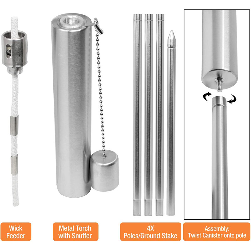 Light up the night in style with the Matney tiki torch set! Whether for landscape appeal or outdoor fun, our stainless steel torches provide a warm ambiance with flickering flames! It features an easy-pour canister, fiberglass wick, and snuffer cap to extinguish the flame when the party’s over. Use any citronella oil and enjoy up to five hours of burn time. They can also be used for insect and mosquito control to keep pesky bugs away (depending on the oil used). To use, simply stake into the ground, light up the night, and turn your backyard into a tiki island paradise! Pole is 1.6cm thick.