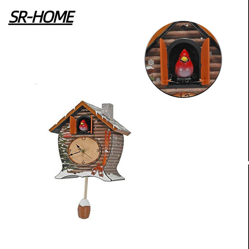 Clock is made of acrylic with natural brown finish; Requires 2 C and 1 AA batteries (not included); Light sensor deactivates the bird song at night allowing your cardinal friend (and you) to get some sleep