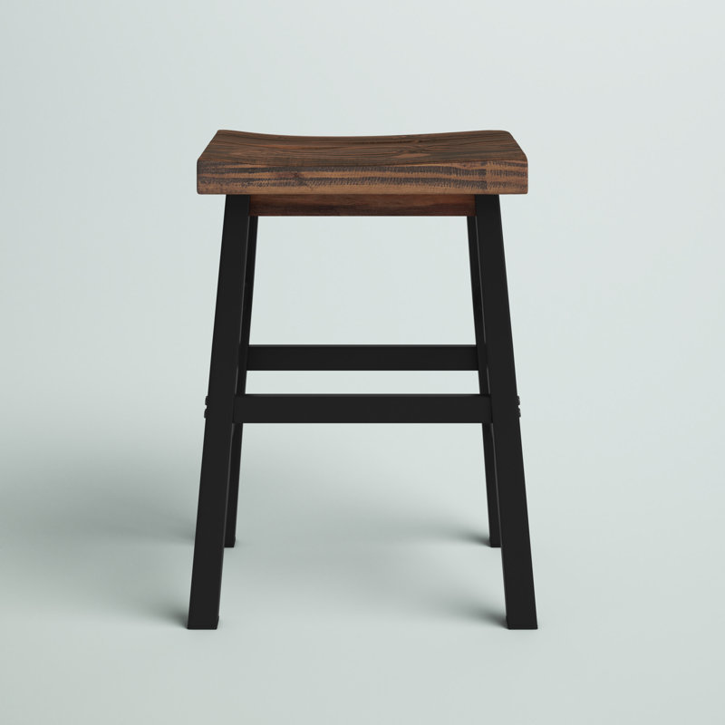 Add a dash of subtle style and timeless cottage appeal to your well-curated and farmhouse-tinged abode with this essential bar stool, boasting the balance of clean-lined, contemporary aesthetics and rugged, rustic looks. Crafted from solid pine wood, it features a reclaimed wood design with a natural-finished base. This backless stool is sure to blend with neutral and earthy color palettes alike, while the classic saddle silhouette makes for a traditional twist to your on-trend environment.