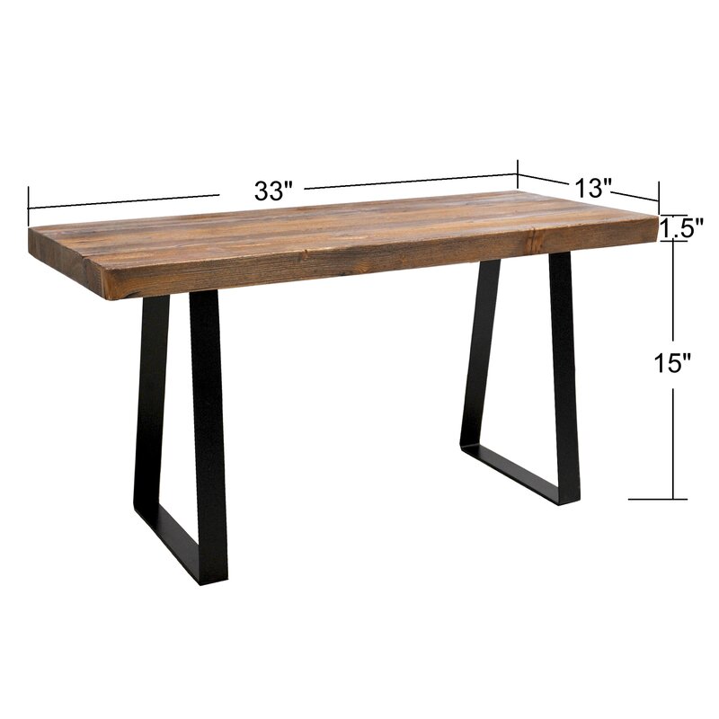 This bench provides a spot to rest bags and quick-grab items in your living room or entryway, and it’s a great place to sit as you put on or take off shoes. It has a streamlined silhouette and mixed materials that bring a modern vibe to your space. The rectangular seat is crafted from solid pine wood with a rustic brown finish that brings out the wood’s natural grain for a lodge-inspired look we love. It rests on two trapezoid-shaped black metal sled legs to complete this distinctive design. It accommodates up to 150 lbs. and requires assembly upon arrival.