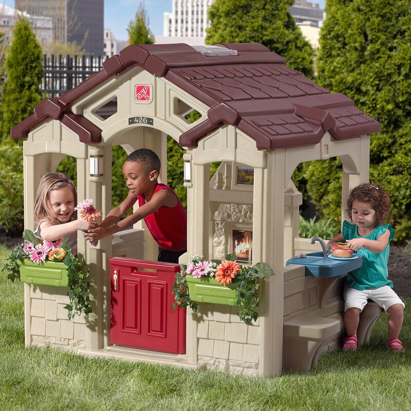 This play house is so adorable and so much fun!!My daughter can play in here for HOURS!!It has a fireplace, mantle, door bell, outdoor seating and planter boxes, and a skylight!What more could you ask for.I am very happy with this purchase and highly recommend this play house for children!