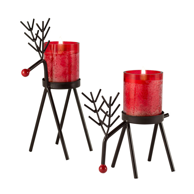 Includes 2 rustic iron reindeer featuring frosted glass candles and Cranberry Spice scent. A festive mix of the season’s best apples and berries, spiced with cinnamon and clove and a touch of vanilla.