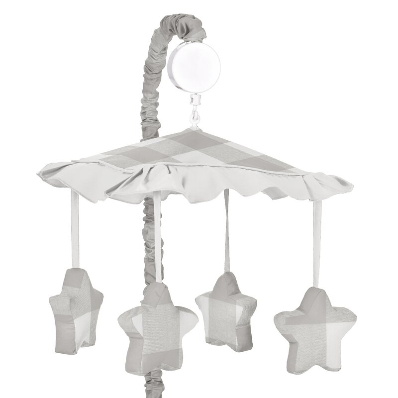 The wind-up mobile spins and plays Brahms’ lullaby. This mobile frame with music box, plastic clamp (fits standard rails), Fabric canopy with hanging toys, and arm sleeve cover.