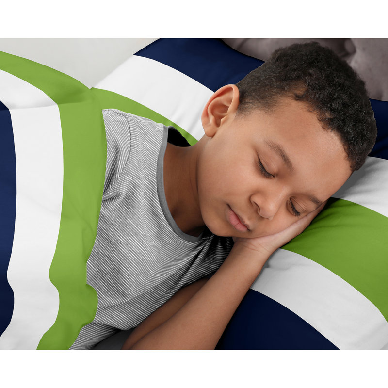 This stripe microfiber reversible comforter set will help you create an incredible room for your child. This stylish designer bedding set features a large designer stripe print.