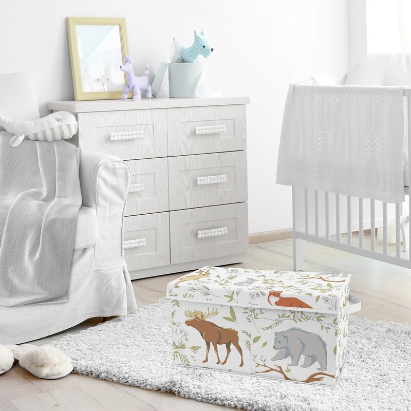 Sweet Jojo Designs fabric storage toy bins offer a stylish yet functional storage solution for toys, clothes, household clutter, and more. What a perfect way to transform your organizational system in any office, playroom, nursery, or bedroom. This foldable storage unit can be used in most shelving furniture, as stand-alone toy bins, or collapsed to save space when not in use. Reinforced fabric handles allow toy bins to easily slide in and out of most standard shelving.