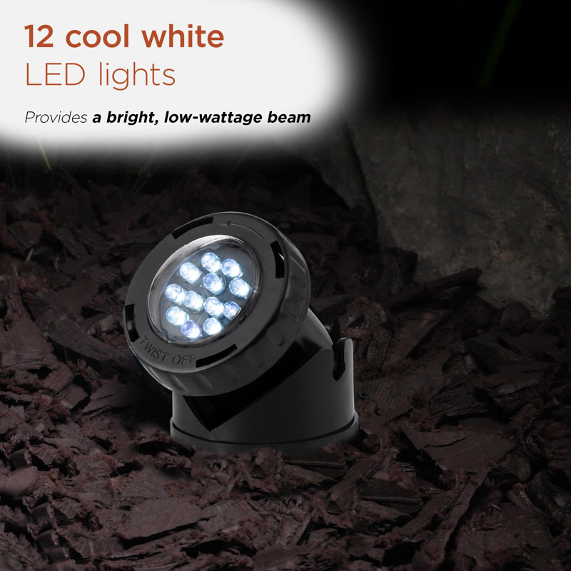 Led lights are energy efficient and last 10 times longer than conventional lighting. This set of three Led lights included PVC housing and comes with 12 super bright white lights per light with four colored lenses for each light, one photo cell and three stakes. They are great for fountains, ponds, lakes, waterfalls or garden landscapes.