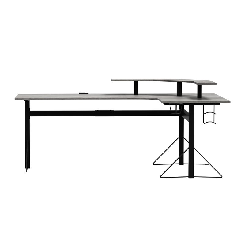This is the gamer desk that will one-up all other gaming desks. The well-designed battle station is kitted out to accommodate all kinds of gear. With its streamlined L-shaped design, the desk is made to perfectly and efficiently fit into corners. The monitor stand is a must-have and fits up to three 29-inch monitors that give you customizable vantage points. Underneath the monitor, the stand is ample space for speakers, staplers, notepads, phone docks, or whatever you want in grabbing distance. The more epic the battle, the more this desk will deliver. The surface is super durable and scratch-resistant and fitted with all kinds of geekery that hardcore gamers will appreciate. Two plug outlets and two USB ports are built into the table so you’re ready to go with your phone, remotes, keyboards, and more. Metal hardware built-ins are designed for headphones, VR headsets, extra remote controls, or snacks, and there’s a cup holder too. A wire management grommet lets you keep your wires nice and organized. Sturdy steel legs and frame and easy-to-clean surfaces make this desk a winner. Assembly required.