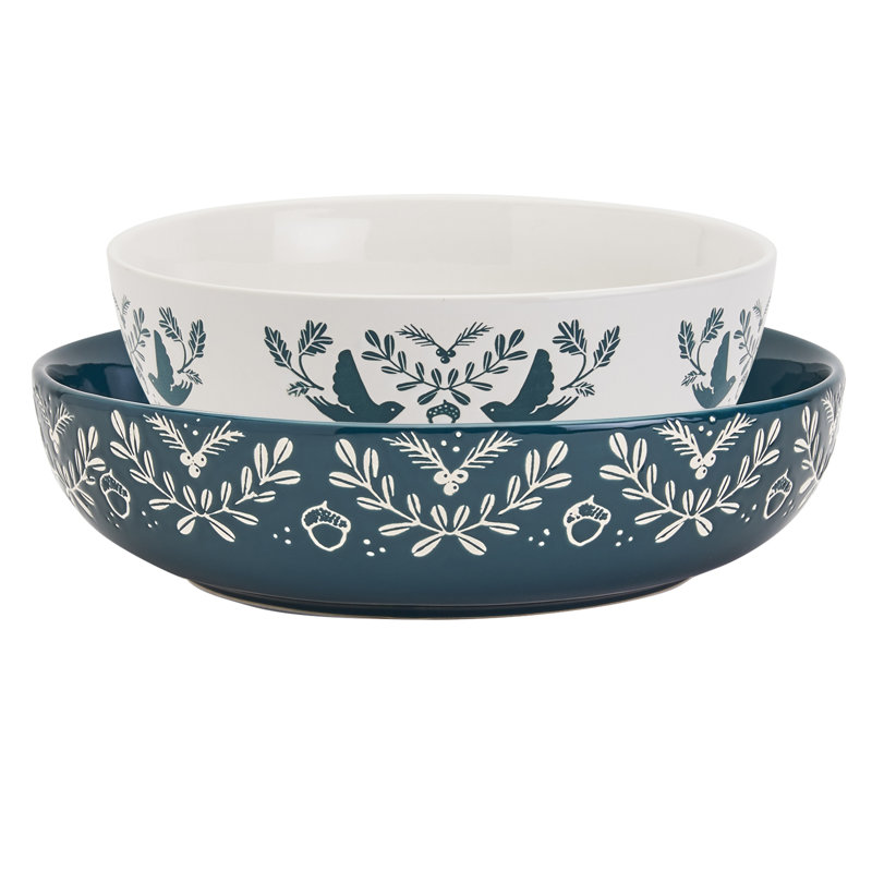 Bring delightful winter décor to your kitchen table with this set of two beautifully designed ceramic serving bowls. Featuring a charming winter forest design and durable ceramic, this set is perfect for serving entrees and side dishes this season.
