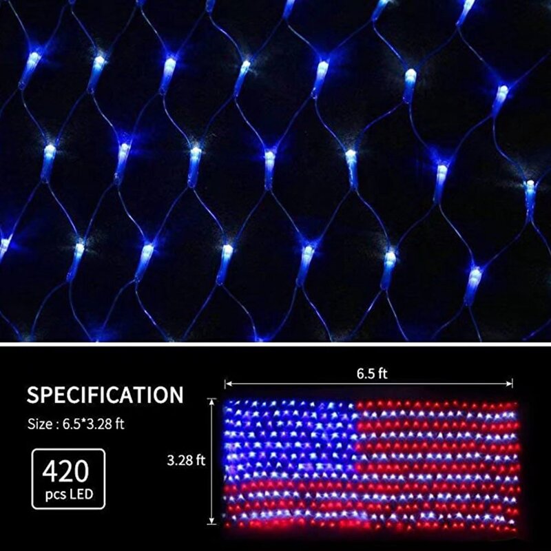 Unique LED flag lights to express your patriotism. It is very suitable for Memorial Day, Independence Day, Christmas, festivals, holidays, parties, and many other celebration occasions. This American flag light has 8 lighting modes, creating a dynamic atmosphere for your yard; you can switch modes at will. (1. Combination 2. Wave 3 . Sequence 4. Slow light 5. Chasing/flashing 6. Fade in and out slowly 7. Flashing or flashing 8. Constant light)