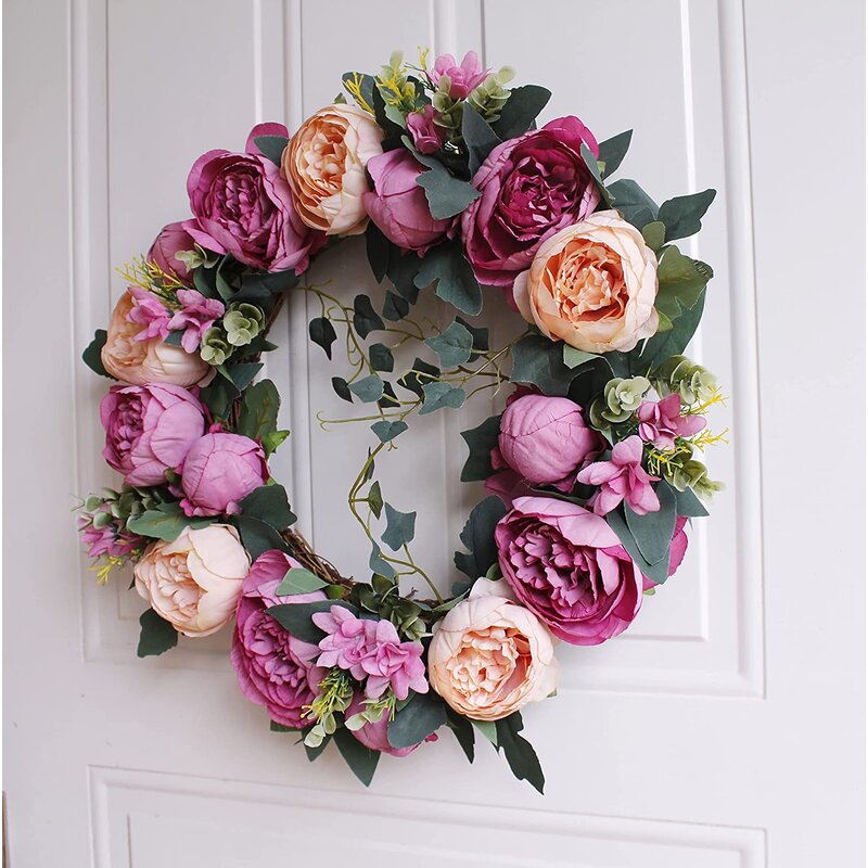 Multi-functional Decor: Wreath can be used indoor or outdoor making it a versatile decorative accessory. Hang it above your fireplace, on your front door, or on a living room wall. This peony wreath will bring an enjoyable ambiance all year round.