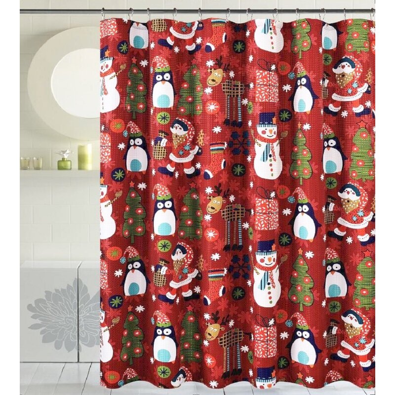 Polyester fabric holiday shower curtain. The shower curtain will add a pleasant feel to your bathroom decor. It will not only provide you with decorative utility but also ensures high functionality.