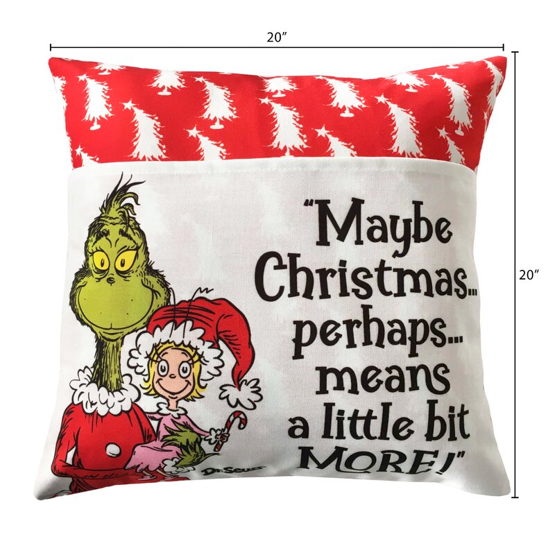 Christmas means more than gifts and perfectly curated spaces, let this charming grinch pillow will serve as a festive reminder when placed on your sofa. The front side of this reversible pillow features a pocket for storing your family’s favorite holiday book. Crafted of 100% polyester, the printed faux linen material adds a joyful pop of color to your room. Add the grinch pillow to your room for an instant pop of nostalgic holiday charm. Polyester fill adds a layer of comfort.
