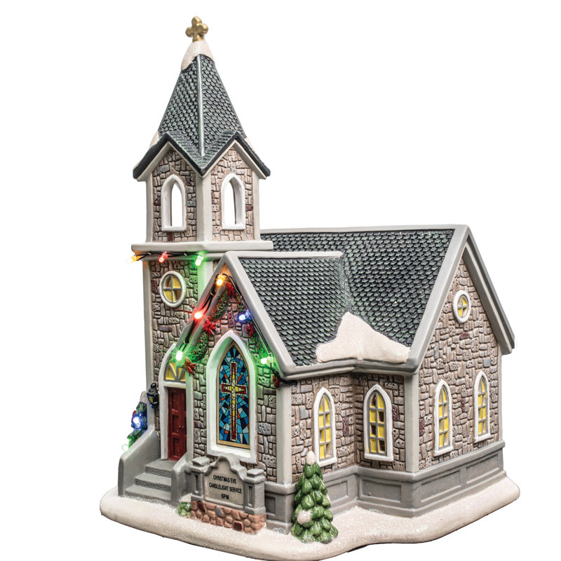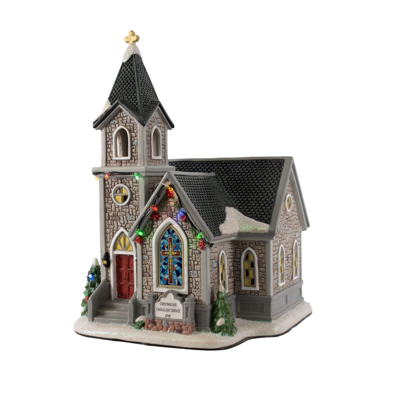 PRE-LIT LED: Illuminate & brighten your house with a Christmas Church village piece featuring warm and inviting LED lights.