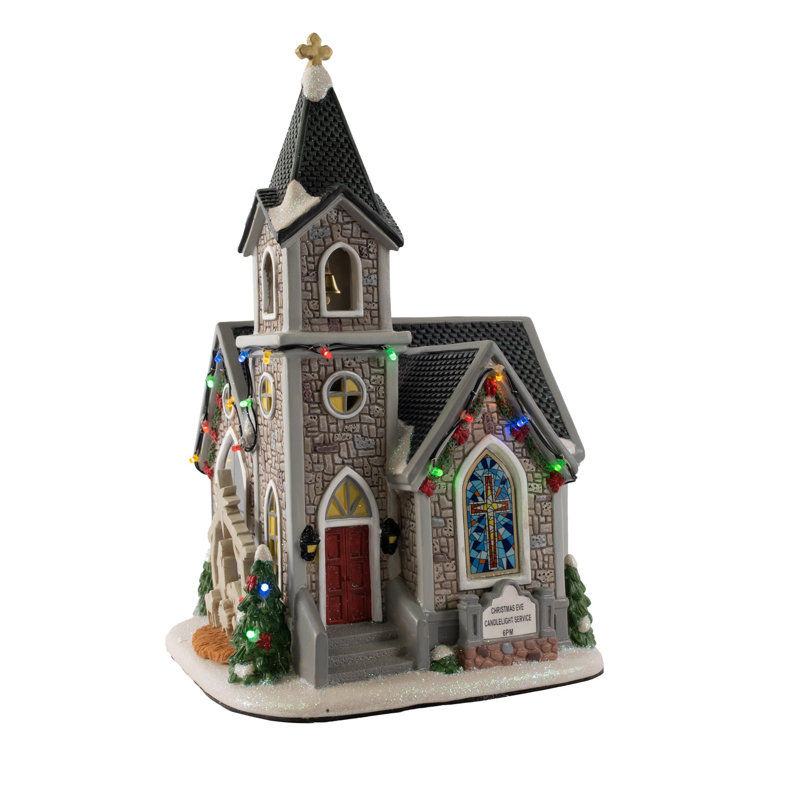 This product is the perfect addition to your holiday decor. This beautiful church features LED lights, making it the perfect centerpiece for your Christmas eve. With its charming design and incredible attention to detail,this product is a must-have for any holiday home.