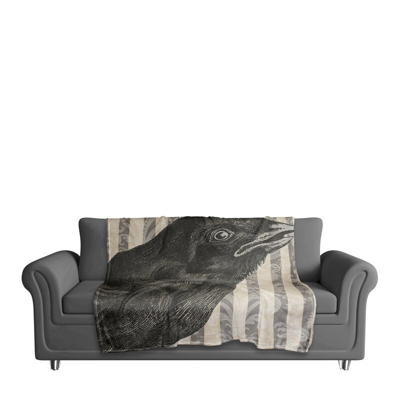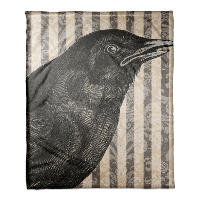 This Crow Fleece Throw features a black crow on an elegant gray and white background. This throw helps you create a frightening atmosphere in your house this fall. Digitally printed on demand, this exclusive design displays vibrant colors. The outcome is irresistible artistry that ensures a lasting impact on your home.