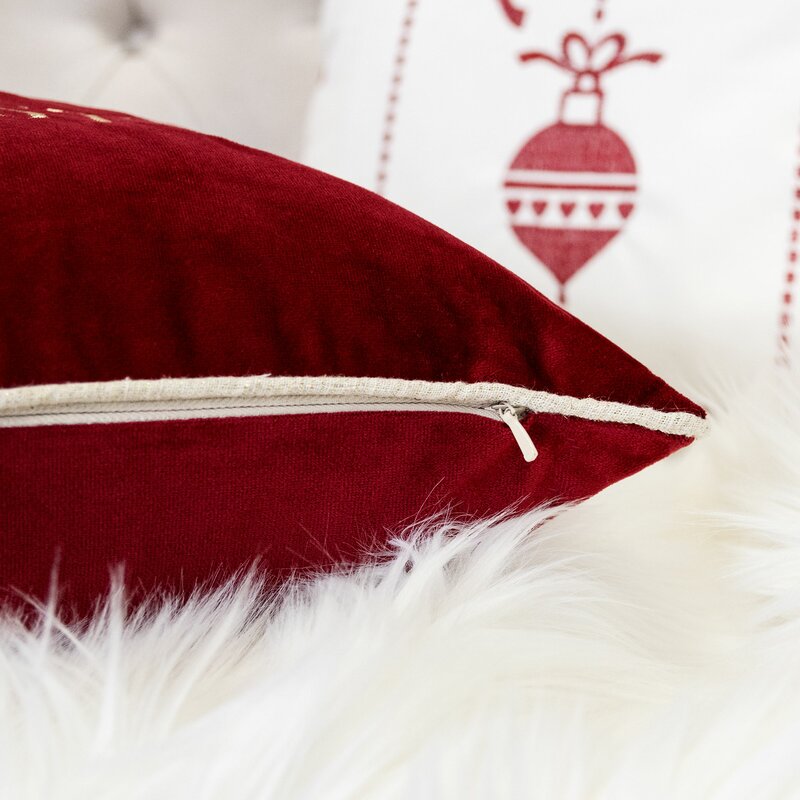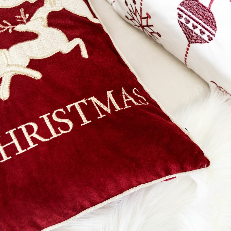Love the feel of this suede material! The gold sparkly embroidery is beautiful and doesn’t shed glitter. It is a great quality medium size pillow. It is a perfect decorate fit for Christmas!! Got it on cyber Monday for a great sale price too!!!