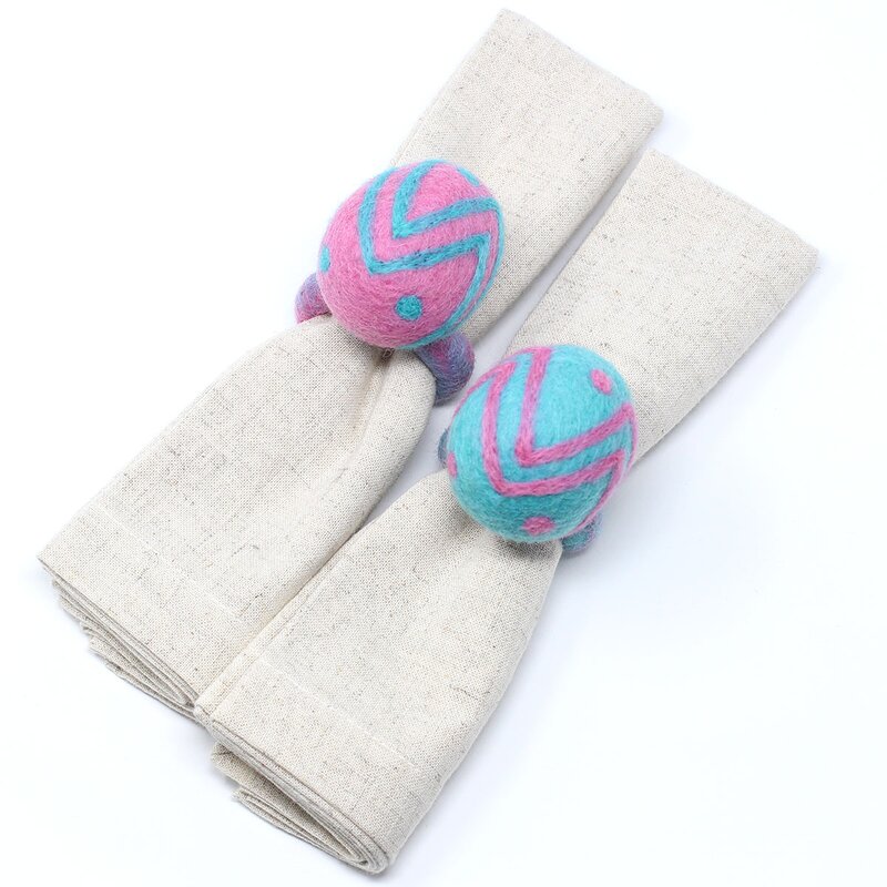 These handmade felted napkin rings are sure to bring some color and fun to your Easter table. Perfect to use throughout the spring time. Makes a fun hostess gift! Handmade in Nepal by women artisans.