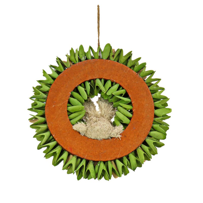 This unique Easter decoration features cuts of green-colored wood designed to simulate a ring of tightly grouped leafy sprouts.