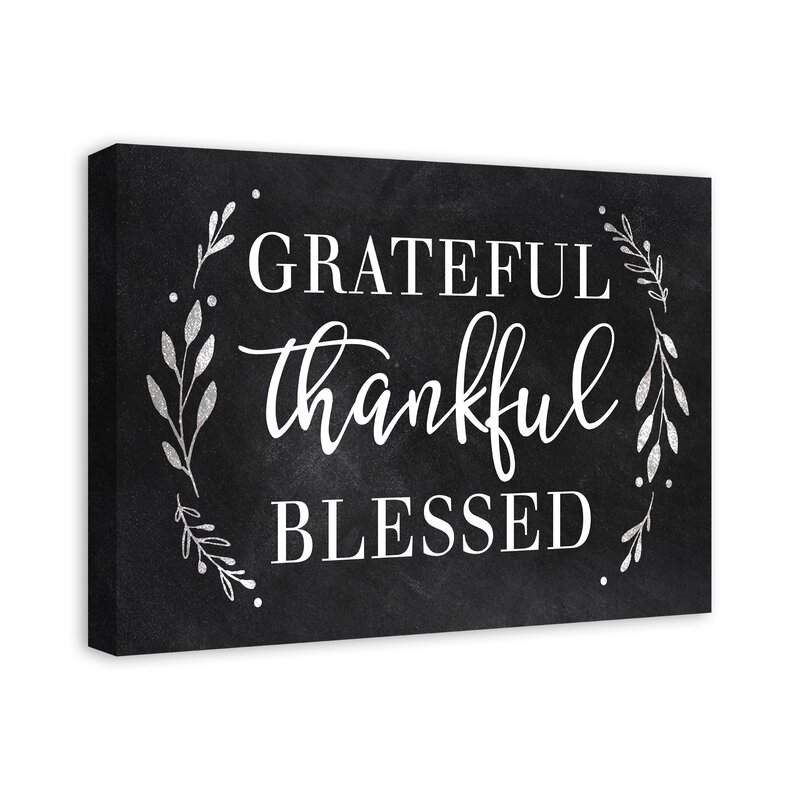 This unique ‘Grateful Thankful Blessed’ Textual Art on Canvas with a welcoming sentiment and is the perfect touch to complete your décor this season.