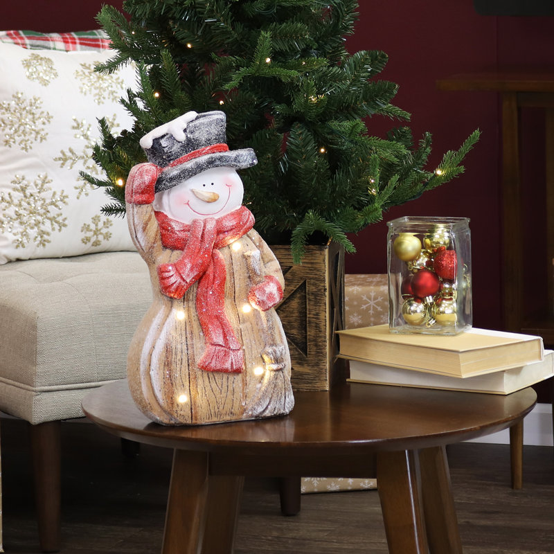 Festive winter accent: This adorable standing snowman figurine measures weighs 5.8 lbs, and has 5 battery-powered LED lights.