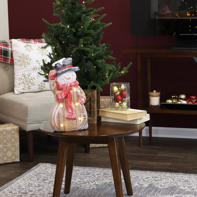 Ready for placement: This festive winter snowman centerpiece comes preassembled and is ready to be used straight from the box. Place this adorable Christmas decoration on the table, fireplace mantel, or entryway bench.