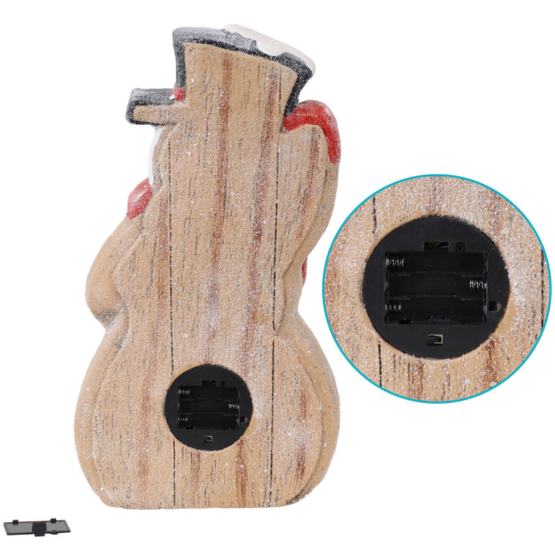 Battery-operated lights: This whimsical snowman statue features 5 battery-powered LED lights. This statue requires 3 AAA batteries (not included) to add a joyful glow to any space.