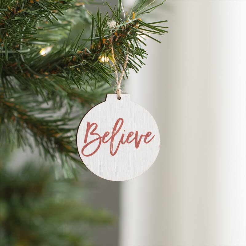 A simple but cute addition to my tree. I added this ornament after watching Polar Express. The grandkids know the message. Not disappointed.