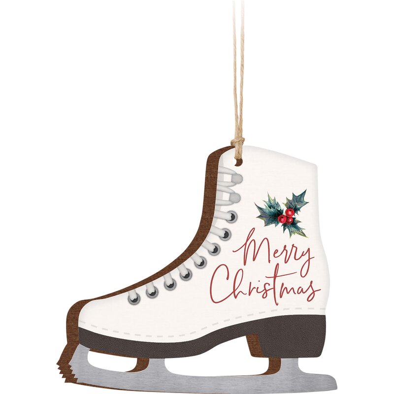 Ornament is shaped like an ice skate
