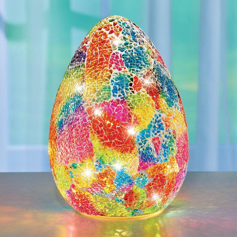 This uniquely designed egg features a lovely glass mosaic design in a rainbow of beautiful colors. Perfect atop a mantel, shelf, or tabletop, the battery-operated LED light inside brings the entire piece to life anywhere in your home.