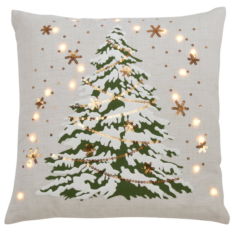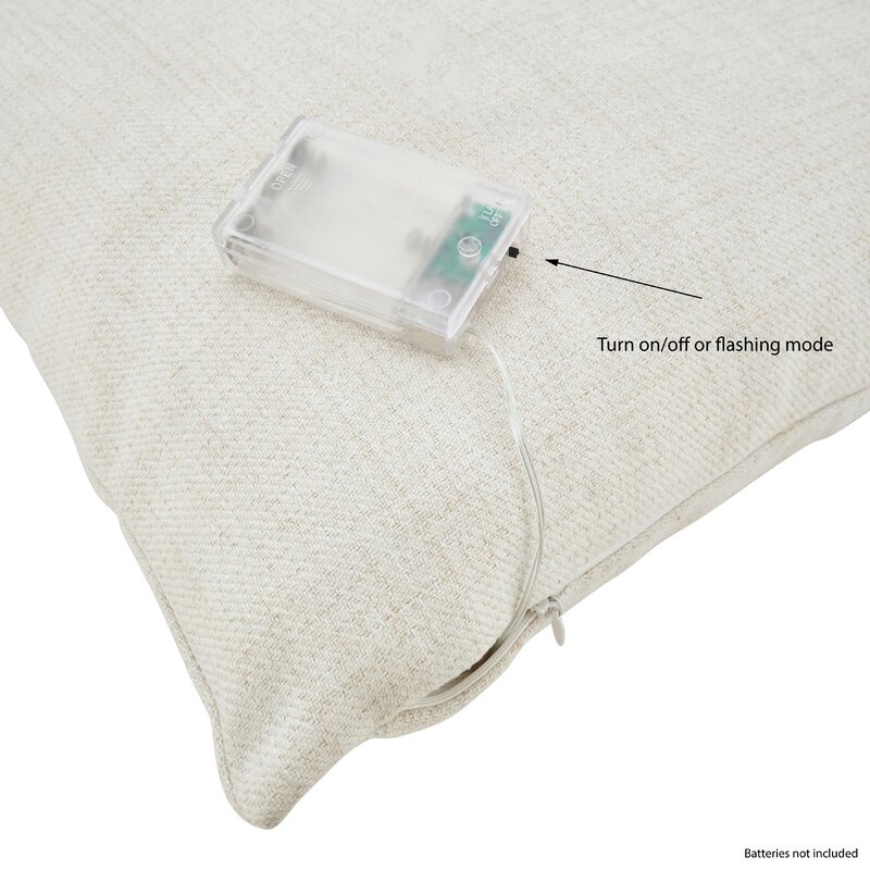 A truly unique accent and fun conversation piece for your holiday décor collection! The design features a centered Losh using traditional holiday colors and LED lights sprinkled about on the front side. Pair with other, solid color throw pillows to help it stand out. Lights are battery powered; batteries not included.
