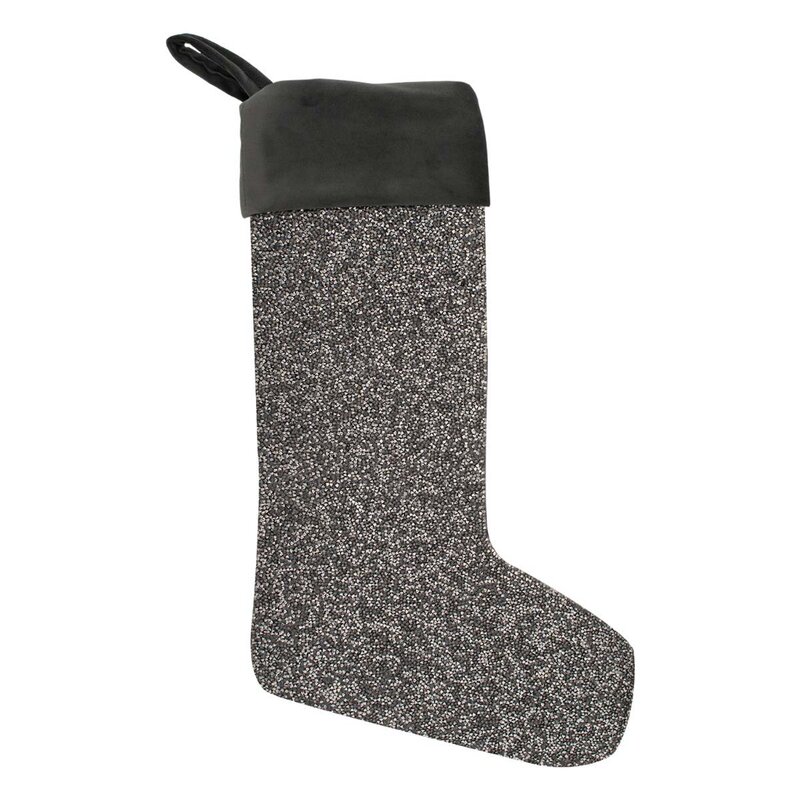 This stocking is luminous material with luxurious color-coordinating velvet fabric. See our matching Christmas tree skirt!