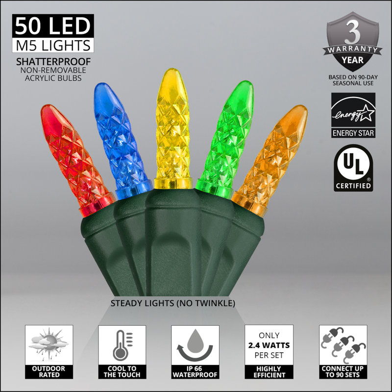 An instant classic! These long-lasting, durable LED Christmas lights mix the traditional style of vintage mini lights with all the benefits of advanced LED technology. Wrap mini Christmas lights around trees, columns, railings, and more to create gorgeous holiday displays indoors and out!