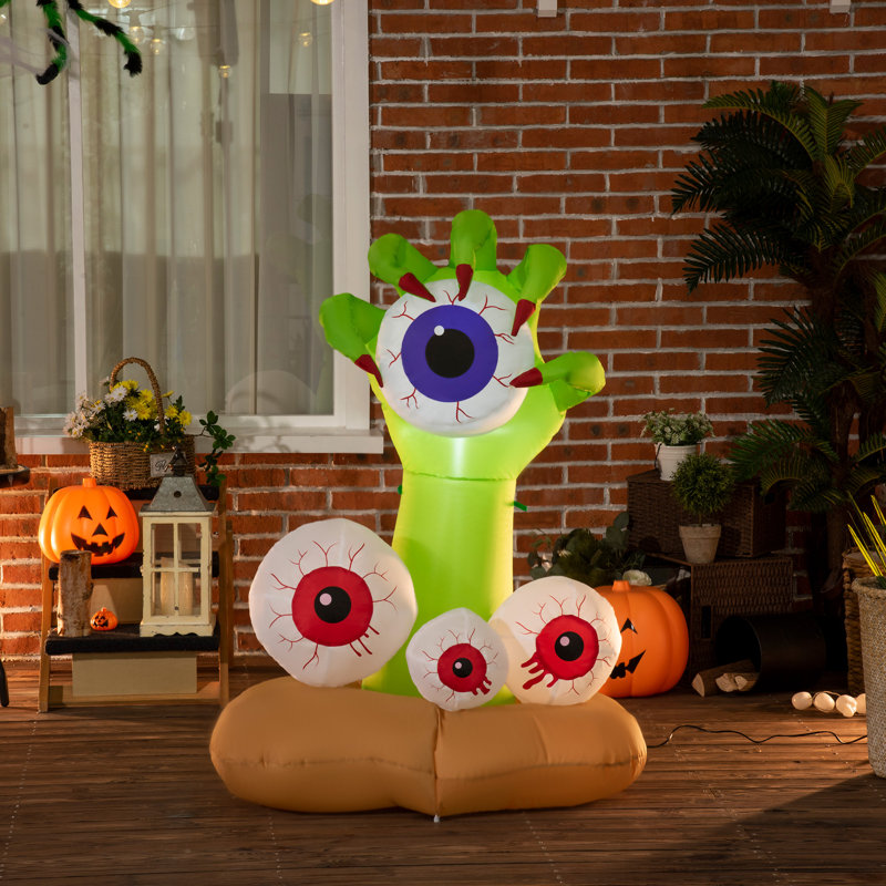 SHOW YOUR FESTIVENESS: You and your neighbors are going to freak at the spook factor of this Halloween inflatable monster hand grasping a purple eyeball with 3 red bloodshot eyeballs. This is going to bring your outdoor holiday madness to new heights and provide days of enjoyment to those hooligan onlookers.