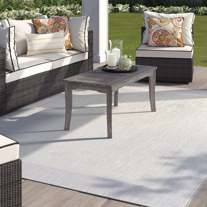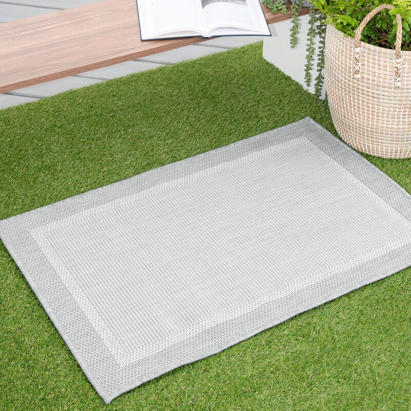 This indoor/outdoor area rug rolls out a textured and understated foundation in your space. It’s flatwoven from polypropylene, and it features a tactile woven pattern and a solid border in gray for a classic look. The low 0.09″ pile height makes it just right for areas with high foot traffic like the patio or entryway. Best of all, this rug is stain-resistant and fade-resistant, allowing it to hold up to the occasional spill and splash. To care for it, vacuum or use a simple spot treatment. And to keep it in place, we recommend pairing it with a rug pad.