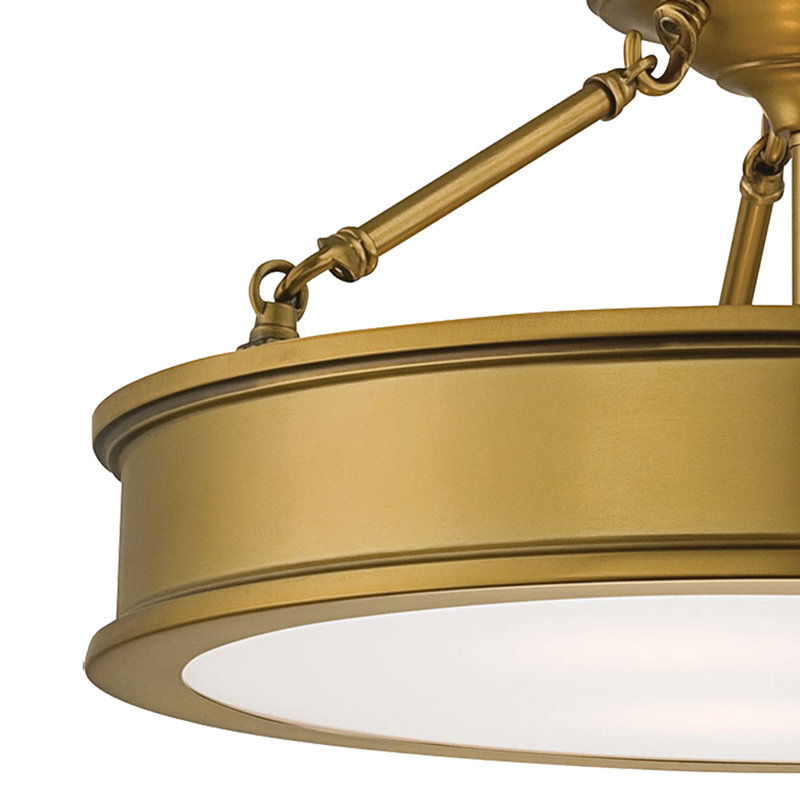 Bring sleek sophistication and a warm glow to any room in your home with this 3-light semi flush mount. It’s made from metal and features four tubular downrods that reach down to a circular frame with molded trim and a metallic finish. Three 100W bulbs (not included) sit inside and their light is diffused through the frosted plastic base to create a welcoming glow. You can install this pendant on a dimmer switch so you’ll always have the right amount of light.