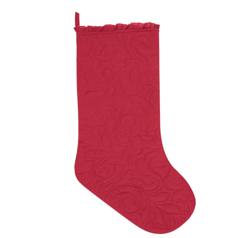 This single stocking helps you deck the halls in classic style this holiday season. Made from cotton in a solid hue, this fabric piece shows off scrolling accent stitching for a quilted, textured look we love. Ruffles along the cuff offer an additional decorative touch, while a loop makes it easy to display it from your fireplace mantel or a festively decorated shelf. At 20″ tall and 8.5″ wide, there’s plenty of space within to fill with all the best treats.