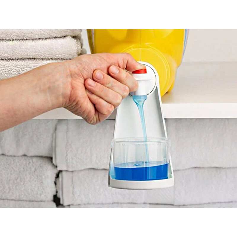 Finally, there’s a way to use economy-sized laundry detergent and fabric softeners without sticky residue dripping from the spout. Tidy-Cup fits under all economy-sized dispenser spouts to catch drips and provides a place to store the cup. Catch the drip and stop the mess with the Tidy-Cup.
