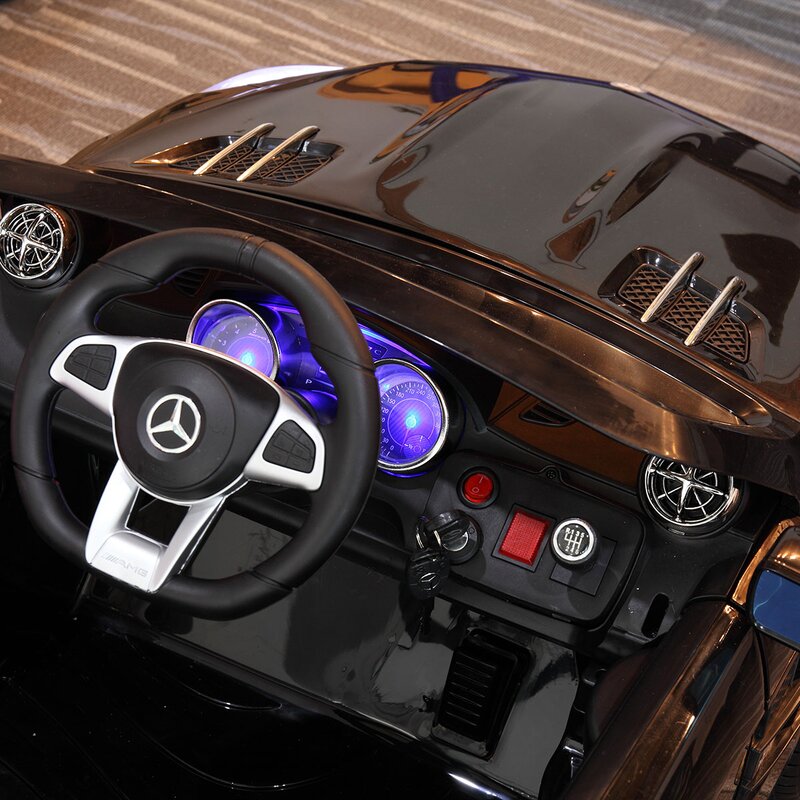 Equipped with a manipulation platform, built-in music, MP3 player, volume adjustment, USB slot, TF card slot, and Aux input, this 4-wheel ride-on Benz car allows you to play music, stories, or early education materials from your smart devices to create an enjoyable riding atmosphere.