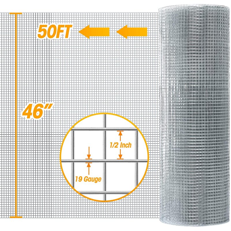 This hardware cloth is with Double-layer hot-dip galvanized coating for rust and corrosion protection. You could use the flexible hardware cloth to build a closed protective cage. Protect your chickens, ducks, rabbits, and other farmed animals from snakes, and vegetables, from small critters such as voles, gophers, etc. Ideal for Rabbits Run, Chicken Coop, Duck Pen, and Vegetable Garden!