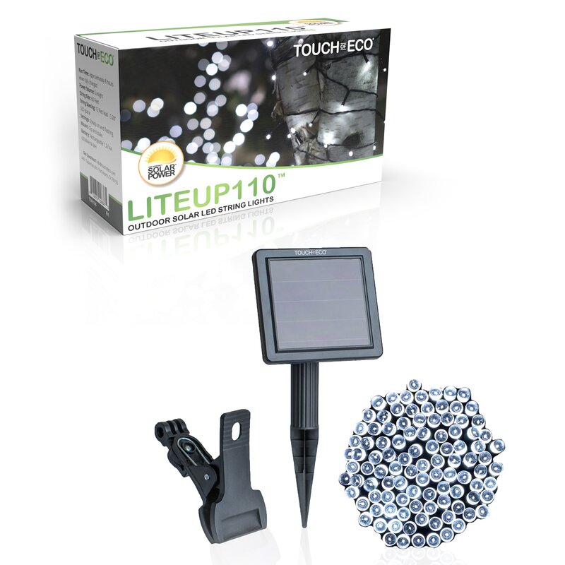 These solar-powered outdoor 110 LED string lights are perfect for year-round decoration. These weather-resistant lights include a ground stake and mounting clip for quick and easy setup. Perfect for your patio, garden, or any outdoor living area in need of energy-efficient and environmentally friendly lighting.