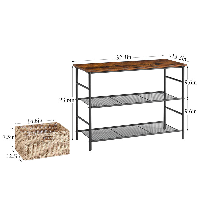 The structure features: This sofa table is crafted with two large open shelves, and each layer provides adequate storage space. Durable feet prevent wobbling from uneven floors.