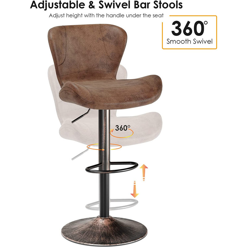 This 2-piece set of swivelling bar stools completes your industrial-inspired home bar with a modern mix of materials. Each is crafted from steel with a pedestal base, distressed for a reclaimed vibe. The matching design features a contoured seat and full back with sponge cushioning that’s wrapped in faux leather upholstery. We love that the fabric has an organic hue and stitching trim for an authentic aesthetic. Plus, both bar stools have built-in footrests for ultimate relaxation. Our favorite? They both swivel for ease of conversation.