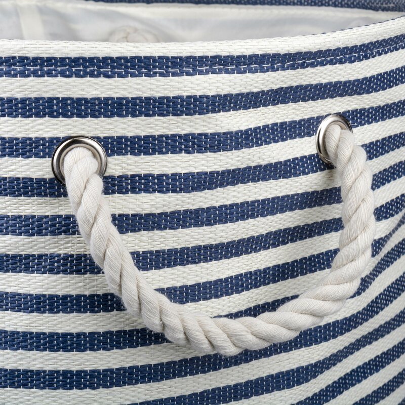 Take back your space with this Round Fabric Bin. The woven paper textured storage bin is a fun and creative way to organize and store toys, clothes, blankets, towels, books, knick-knacks, and more. Tired of clutter in the kid’s room, living room, or laundry room? The storage container could be the perfect solution to organize the clutter while enhancing your home’s décor. Add some sparkle with metallic or bring color and interest to a dull room with vibrant hues and a sophisticated look while also adding functionality. The trendy bin has become very popular due to its simple yet chic look, versatility, and dependability. The storage bin is up to the task of being carried to-and-fro, used to transport groceries, laundry, or household goods – the bin will handle it. The storage bin is made from high-quality woven paper with thick, yet soft cotton rope handles for easy transport. These rope handles are designed to give you optimal tension and comfort while transporting. When not in use, simply collapse the sides and store the bin flat. The material and construction provide a long-lasting bin that you can use over and over again.