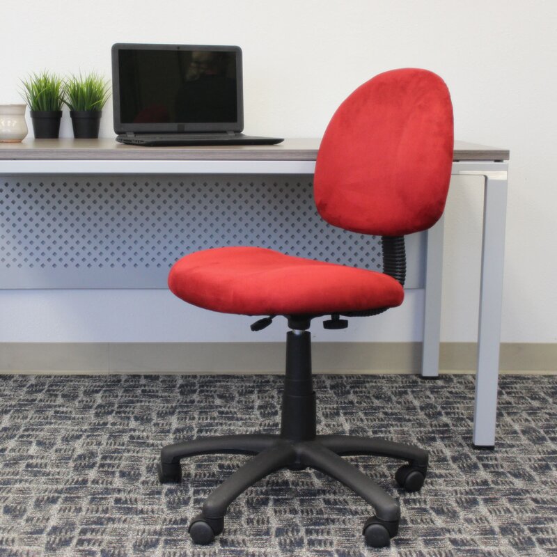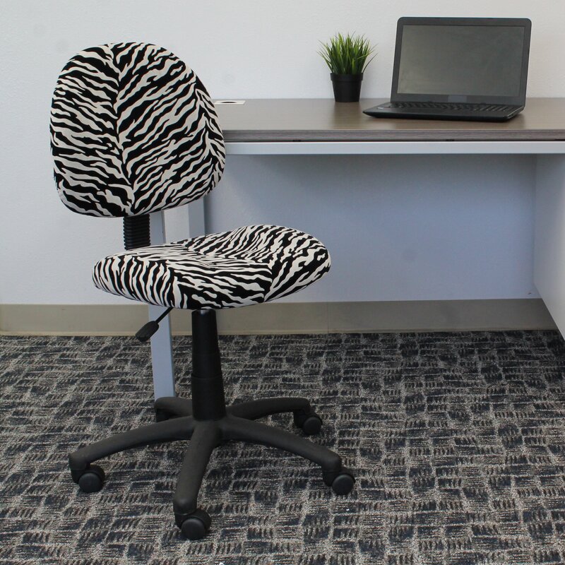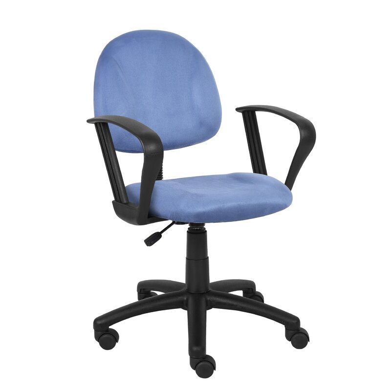 Whether used in the home office or workplace cubicle, this office chair is a must-have for anyone who works long hours from a sitting position. Simplistic in design yet bold in color, this desk chair features a padded seat and back to provide lumbar support. It includes a pneumatic lever for adjusting the height, as well as a plastic base with swivel casters for easy transport.