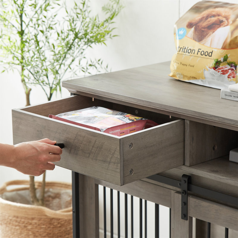 The wooden dog kennel furniture has a top thickness of 1.18 inches and can bear 300 lbs.